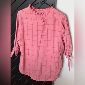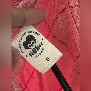 Folklore Las Ninas blouse. Size S. Mock ruffle neck. Sleeve ties.