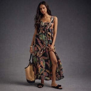Farm Rio Cool Foliage Black Sleeveless Maxi Dress/Size XXS