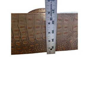 Brahmin Tan Croc Embossed Leather Satchel Handbag With Multiple Compartments