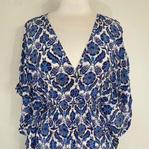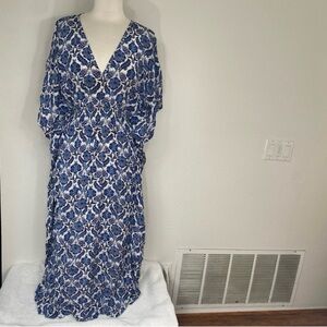 Anthropologie Women's Rujuta Sheth Blue Floral Kimono Kaftan Maxi Dress M/L Boho