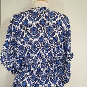 Pull on style, lightweight, flowy, smock waist, kimono sleeves, unlined, no pockets, maxi length, kaftan. Could be worn as a Beach cover up or a dress. Bohemian, tropical, boho, hippie, beach, vacation, cruise, casual, coastal, Hampton, free spirit, gypsy, Coachella, girlhoodcore, travel, Hawaii, western, southwest, Joshua Tree, Talum, summer, spring, fall, autumn.