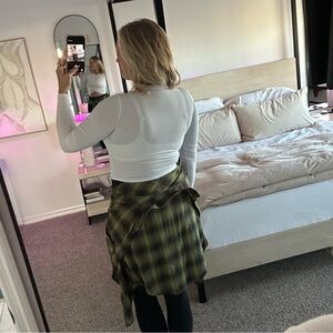 Abercrombie & Fitch White Long Sleeve Soft AF Crossover Cropped Ribbed Shirt, S