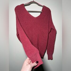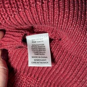 Color is a deep cranberry/berry knit with a subtle metallic thread ✨
