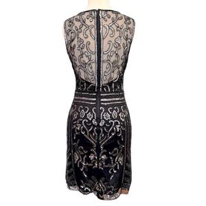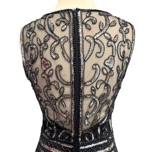 GIANNI BINI Navy Blue Sequins Art Deco Cocktail Party Dress Size Medium