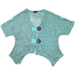 Blue and White Short Sleeve Knit Fairycore Top with Two Buttons Up Front, Kaktus Brand, Size Large, Good Condition has a snag on shoulder and a Few and Sleeve