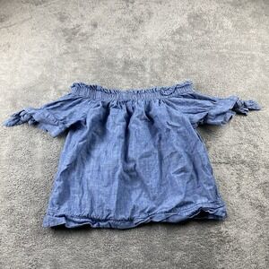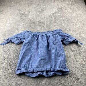 J Crew Chambray Off Shoulder Top Womens 2P Petite Blue Short Sleeve
