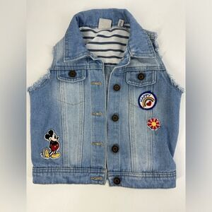 JUNKFOOD Kid’s Disney Patch Cutoff Denim Vest Sz S (6-7)