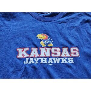 Vintage 90s Kansas Jayhawks Basketball T Shirt Large Blue Graphic Pro-Ad Sports
