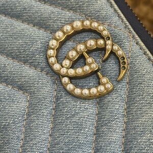 Gucci Marmont Light Distressed Denim Zip Around Wallet