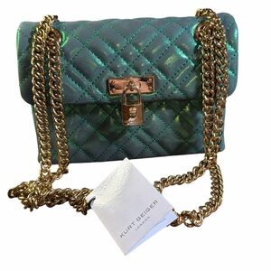 Kurt Geiger Metallic Green Quilted Crossbody Bag With Dusty
