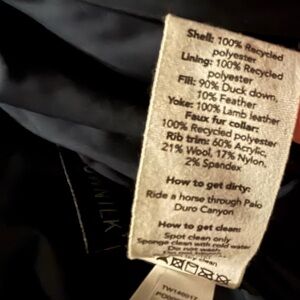 Tecovas Navy puffer with duck down and brown lamb leather accents. Soft faux fur collar. Button &/or zip option. Ideal for cold weather. New with tags.