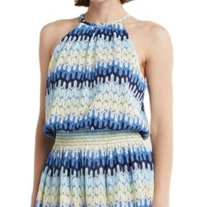 Ramy Brook "Leona" halter knit mini dress in blue