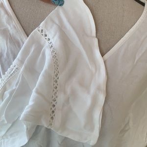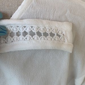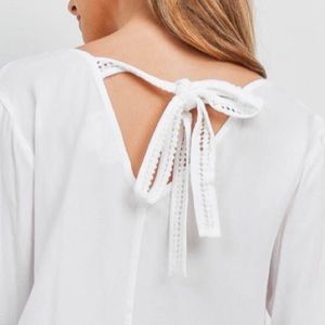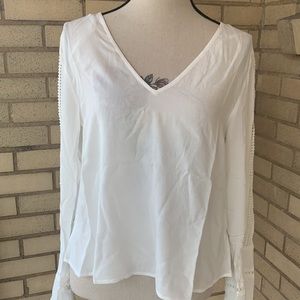 Love Riche White Long Bell Sleeve Oversized V-neck Tie Top NWT
