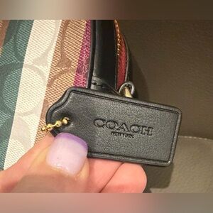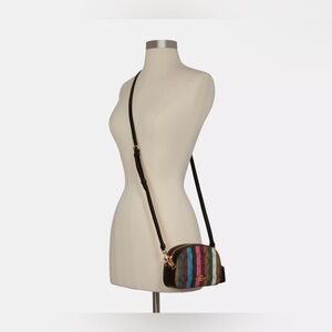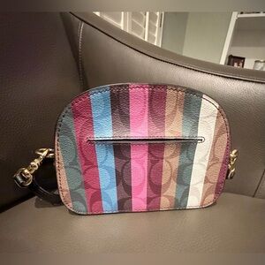 Chic Coach bag with vibrant stripes. Ideal for any occasion.