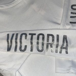 NEW* Victoria’s Secret Sport White Sliver Glitter Logo Sleeve Crop Top Features: