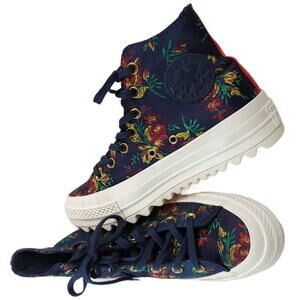 Converse Platform CTAS Lift Ripple Obsidian Navy Floral Sneakers Hi Top Chunky Bohemian