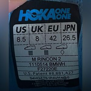 Hoka One One Rincon 2 LIGHTWEIGHT Mens Size 8.5 Running Shoes Blue White