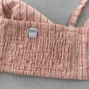 Old Navy Bralette Top Women's XL Cross-Front Poplin Smocked Striped Pink NEW