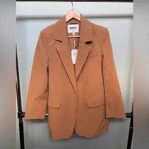 Elegant camel blazer by Only. Features notched lapel and front pockets. Fits very oversize. New with tag. Beautiful and stylish.