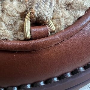 Leather upper; polyester faux-shearling; fabric lining; manmade sole