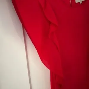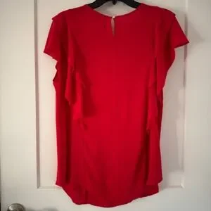Elegant red blouse with ruffle sleeves. Perfect for any occasion.