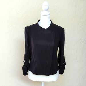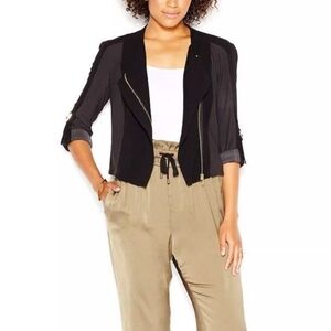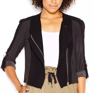 Rachel Rachel Roy Black Mixed Media Moto Style Cropped Jacket Size Medium