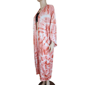 YOUNG FABULOUS & BROKE Kana Orange White Tie-Dye Kimono Kaftan S