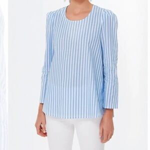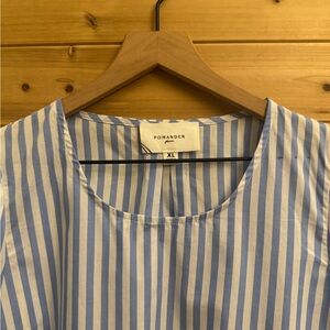 Pomander Place Tuckernuck XL Vertical Stripe Bedford Blouse Puff Sleeve Nautical