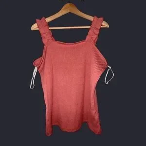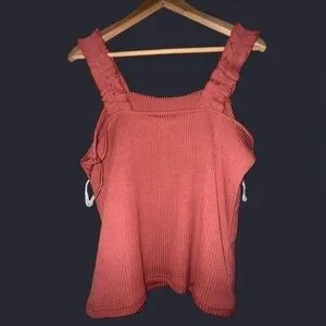 This vibrant ribbed tank top features ruffled straps, perfect for adding a playful touch to your summer wardrobe. The sleeveless style makes it ideal for warm weather, while the pink hue offers a fresh, feminine look.