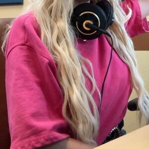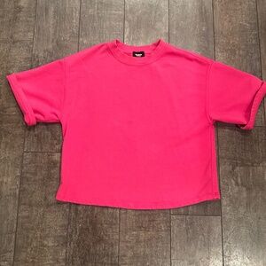 Monrow eco-friendly organic cotton, pink shirt - I believe it’s a medium. It’s in good condition. I’m 5’7 130 lbs and it fits me loose and perfect (see photo)
