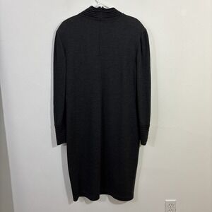 St John Dress Size 14 Gray Long Sleeve Gold Embellishments Old Money Classic