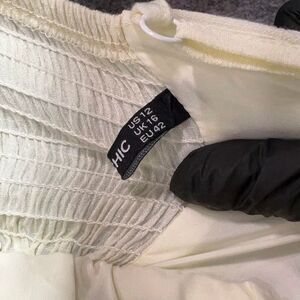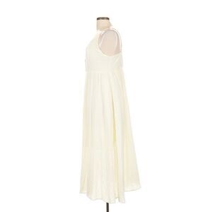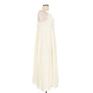 Boho Cotton Blend Midi Dress White Button Front Sun Dress Summer City Chic Size L