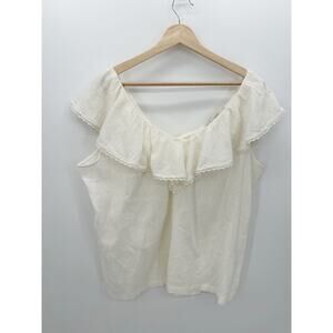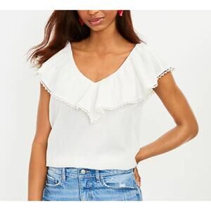 Loft Cream Ruffle Double V Shell Tank Top Blouse Women XL NWT Summer Boho