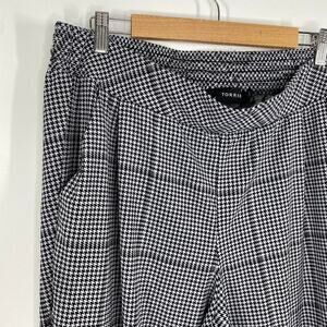Black White Plaid Houndstooth Crepe Pull On Tapered Pant Womens Size 1 1X by Torrid