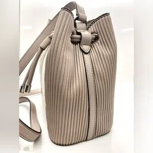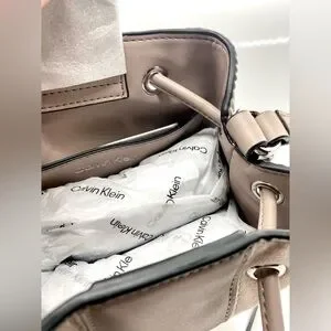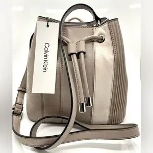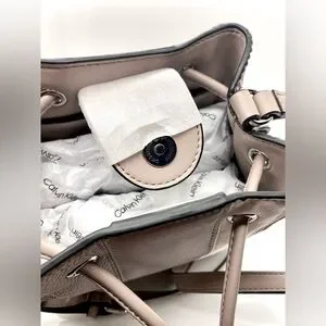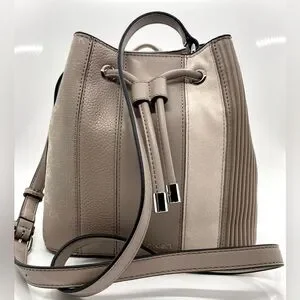 Calvin Klein Faux Leather Bucket Patch Work Bag Crossbody Nude Gabrianna Hobo