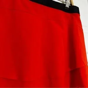 Vibrant red/orange mini skirt. Features a sleek silver Nike logo. Ideal for sporty style.