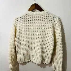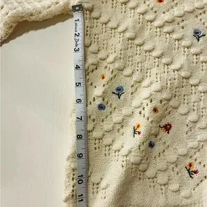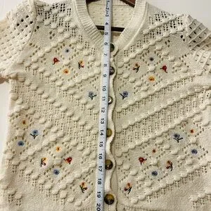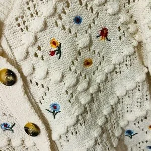 Vintage Inspired Classic Woman's Cream Embroidered Openwork Knit Cardigan