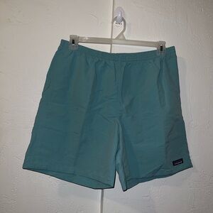 -Bundle of four baggies 7 inch inseam shorts. Black, gray, green and blue. Side pockets with a button backside pocket. Adjustable tie waist.