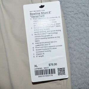 lululemon Bowline Short Versa Twill Men's Size XL 8" Inseam Beige Khaki NWT