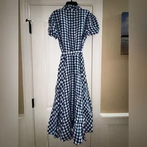 Lightweight linen with a yarn-dyed gingham pattern lends quintessential warm-weather style to this belted shirtdress.