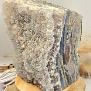 This beautiful lamp has a big size 5.5H nature crystal geode cluster. The entire lamp is covered with crystal point. Beneath the larger points lies a layer of ultra‑sparkling micro‑crystals accented with spotty mineral inclusions, giving the lamp incredible depth and texture.