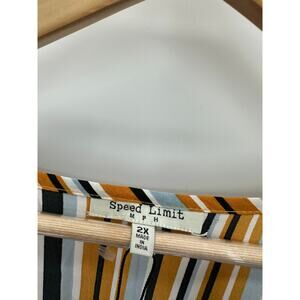 Speed Limit Mustard Yellow Striped Cap Sleeve Blouse Zipper Shirt Women 2X NWT