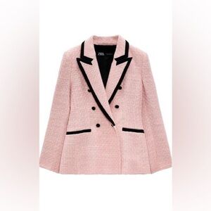 Zara Textured Blazer with Contrast Piping on Pink and Black Size XS