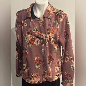 Blu Pepper Floral Blazer Moto Jacket in Pink and Cream