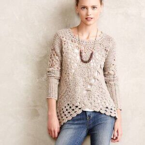 Anthropologie Handknit Posy Pullover Crochet Tan Sweater