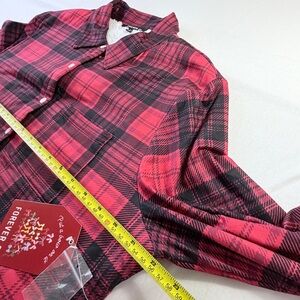 Forever 21 Womens Red Plaid Fleece Lined Button Down Long Sleeve Shirt Large NWT