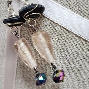 These elegant dangle earrings feature a stunning combination of silver and black, perfect for any occasion. The intricate design adds a touch of sophistication to your look.