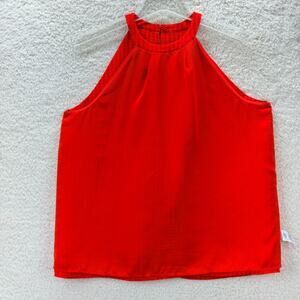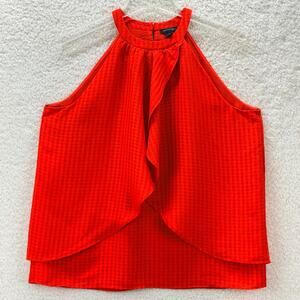 Ann Taylor Halter Neck Red Top Ruffled Front Size M Sleeveless Layered Casual