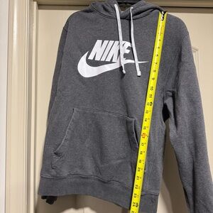 Classic Nike pullover hoodie in a dark heather gray with bold white swoosh logo across the chest. Super comfy and easy to style — a staple for everyday wear, lounging, or streetwear fits.