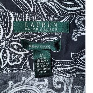 Lauren Ralph Lauren Womens Black White Paisley Print Button Up Shirt Size M